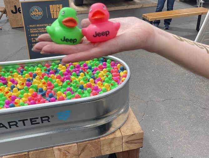 The Jeep Duck Tank featured multi-colored Jeep-branded ducks that guests would pick and win a prize giveaway. To extend the reach of the activation beyond the Walker Drug site, Jeep street teams took a mobile version of the duck tank on the road to visit trail heads, restaurants, bars, other local venues/events.